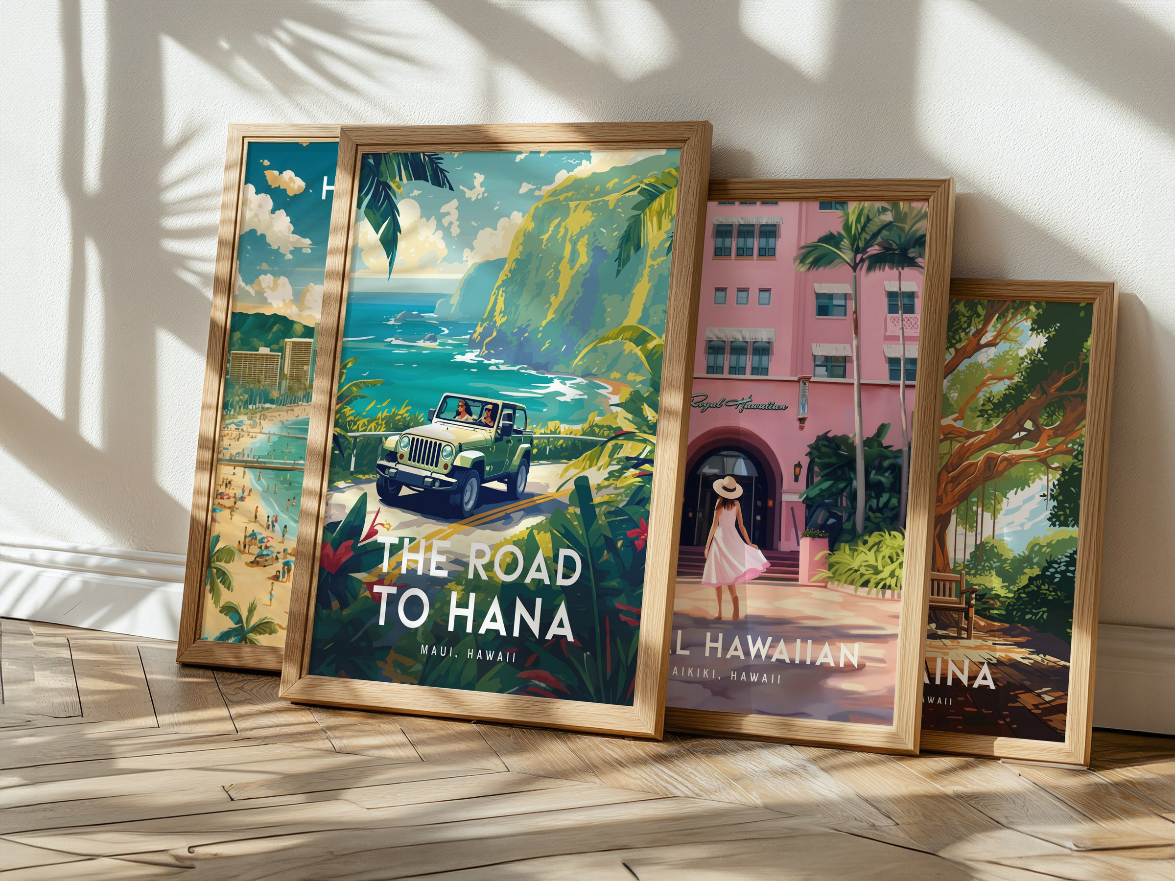Waikiki Surf Oahu Hawaii Vintage Surfer Travel Print Wall Art