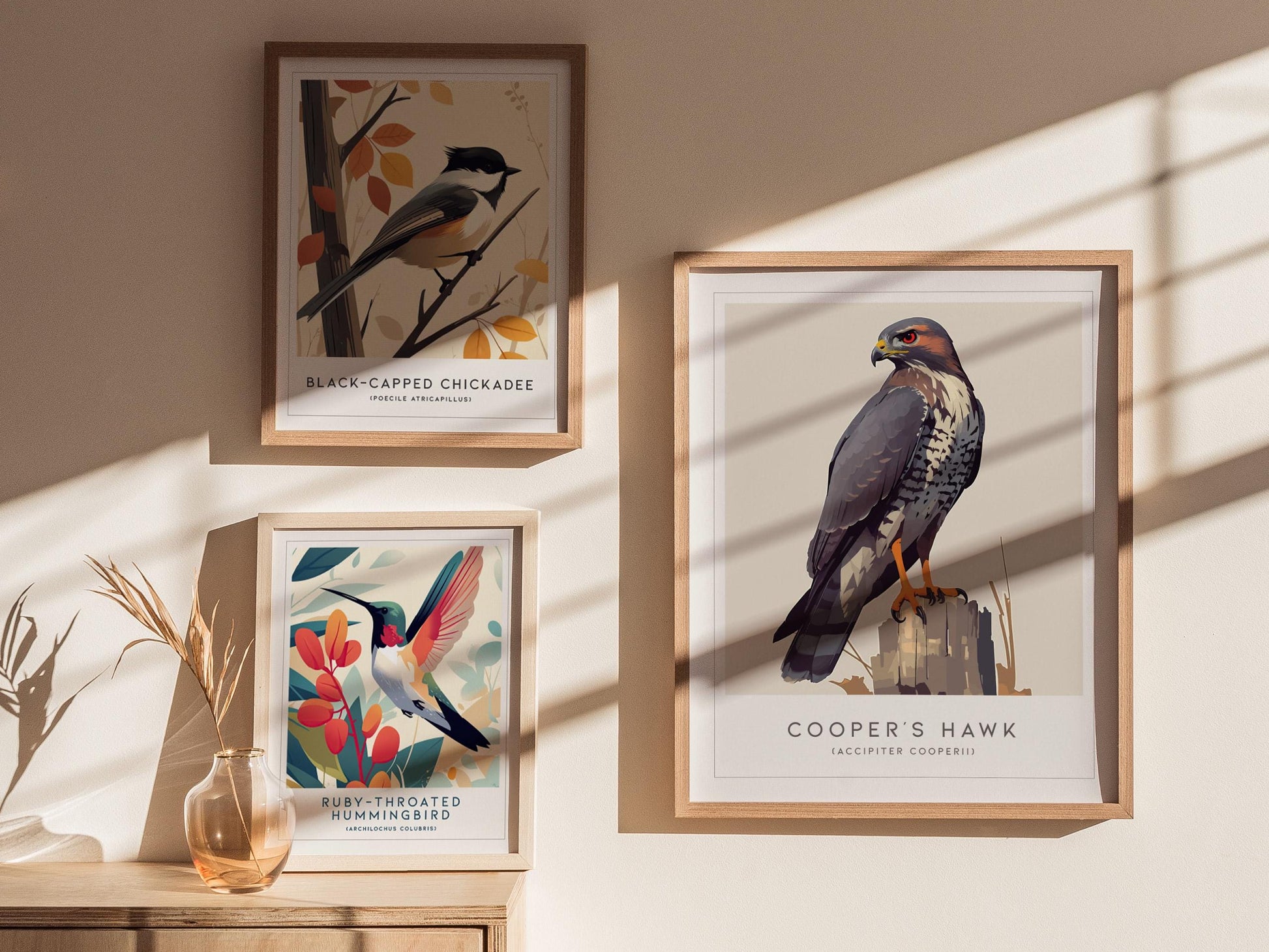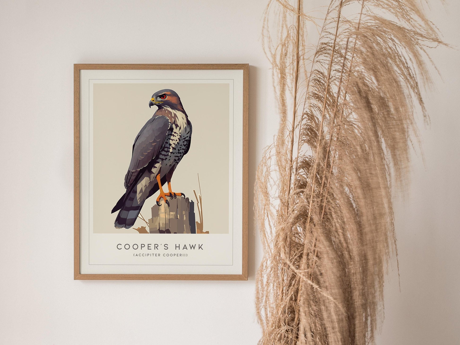 - Elegant Nature-Inspired Design: A detailed depiction of the Cooper’s Hawk set against soft, natural tones that enhance any room’s atmosphere.