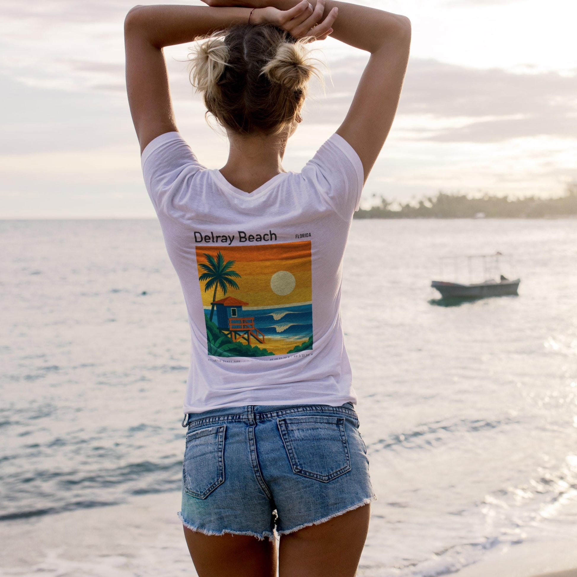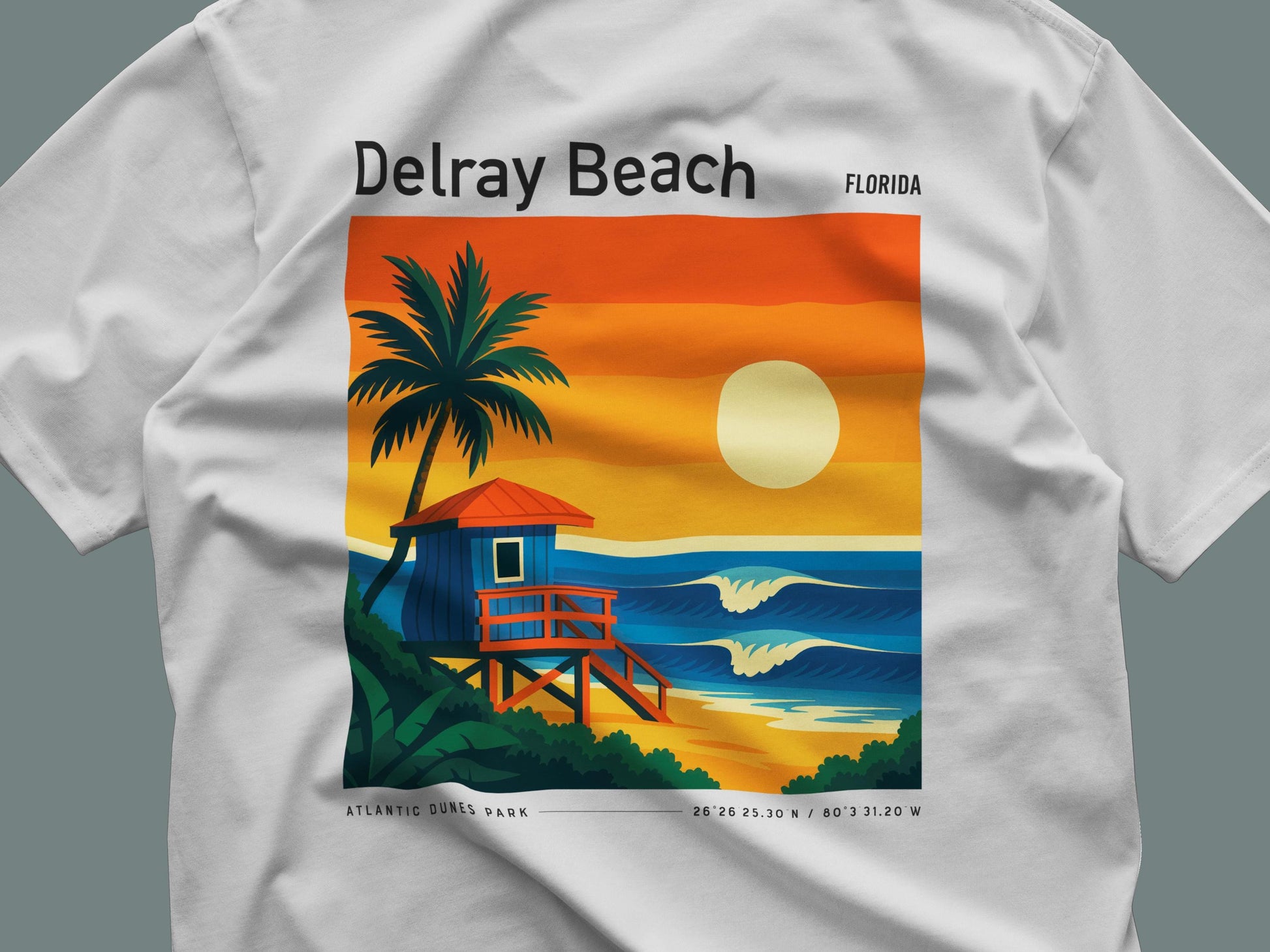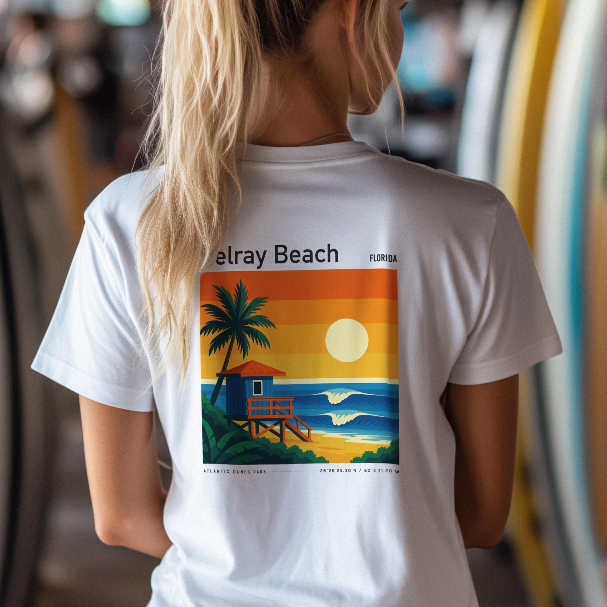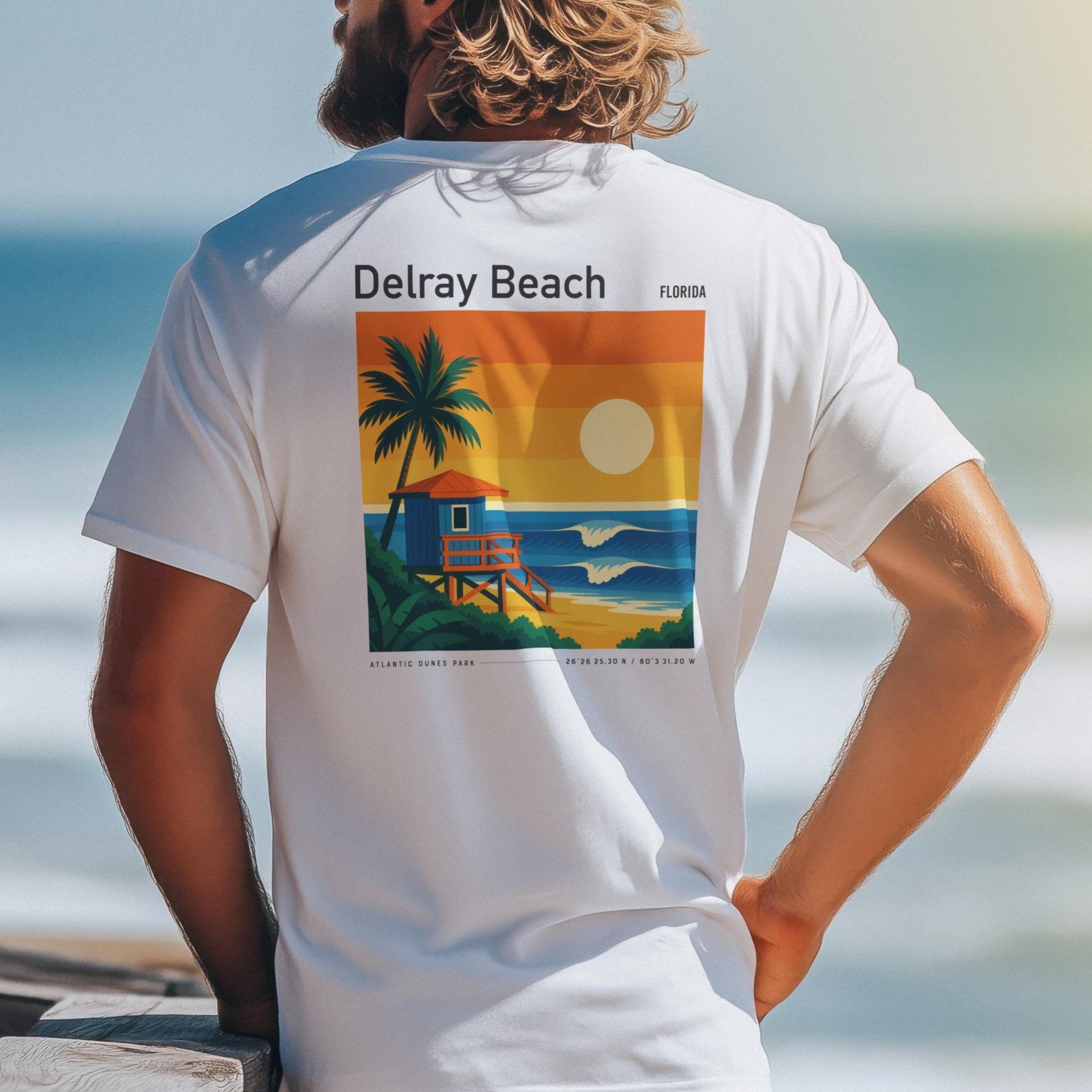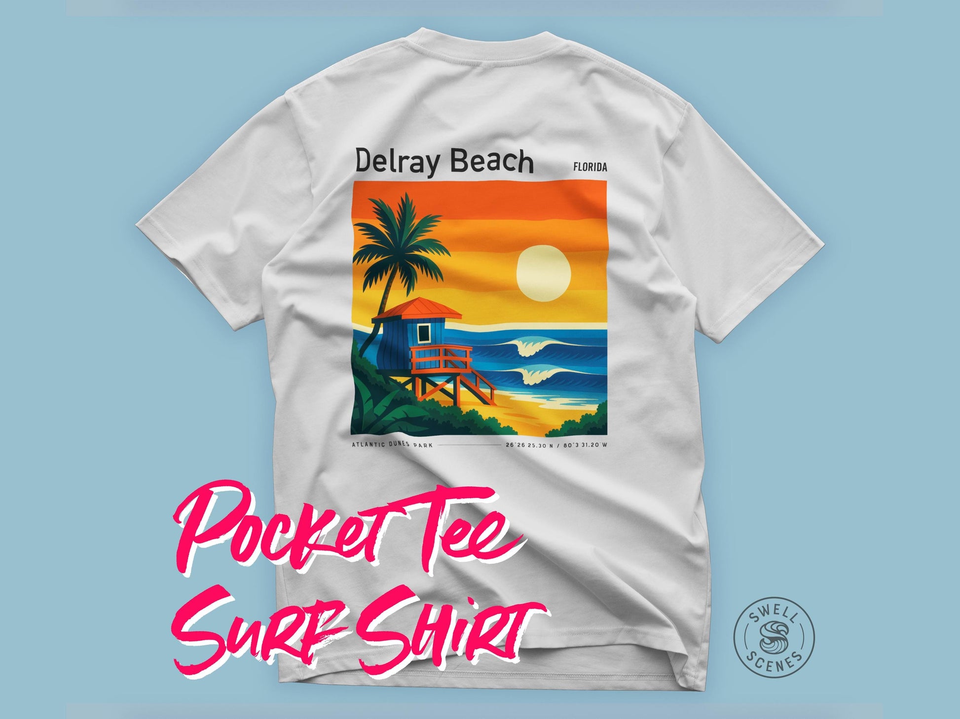 Delray Beach Florida Vintage Surf Shirt Pocket Tee Atlantic Dunes Park Surfer Classic T-Shirt Gift Surfing Design FL Coastal Wear Apparel