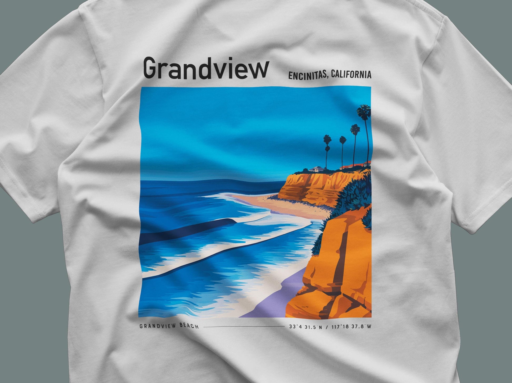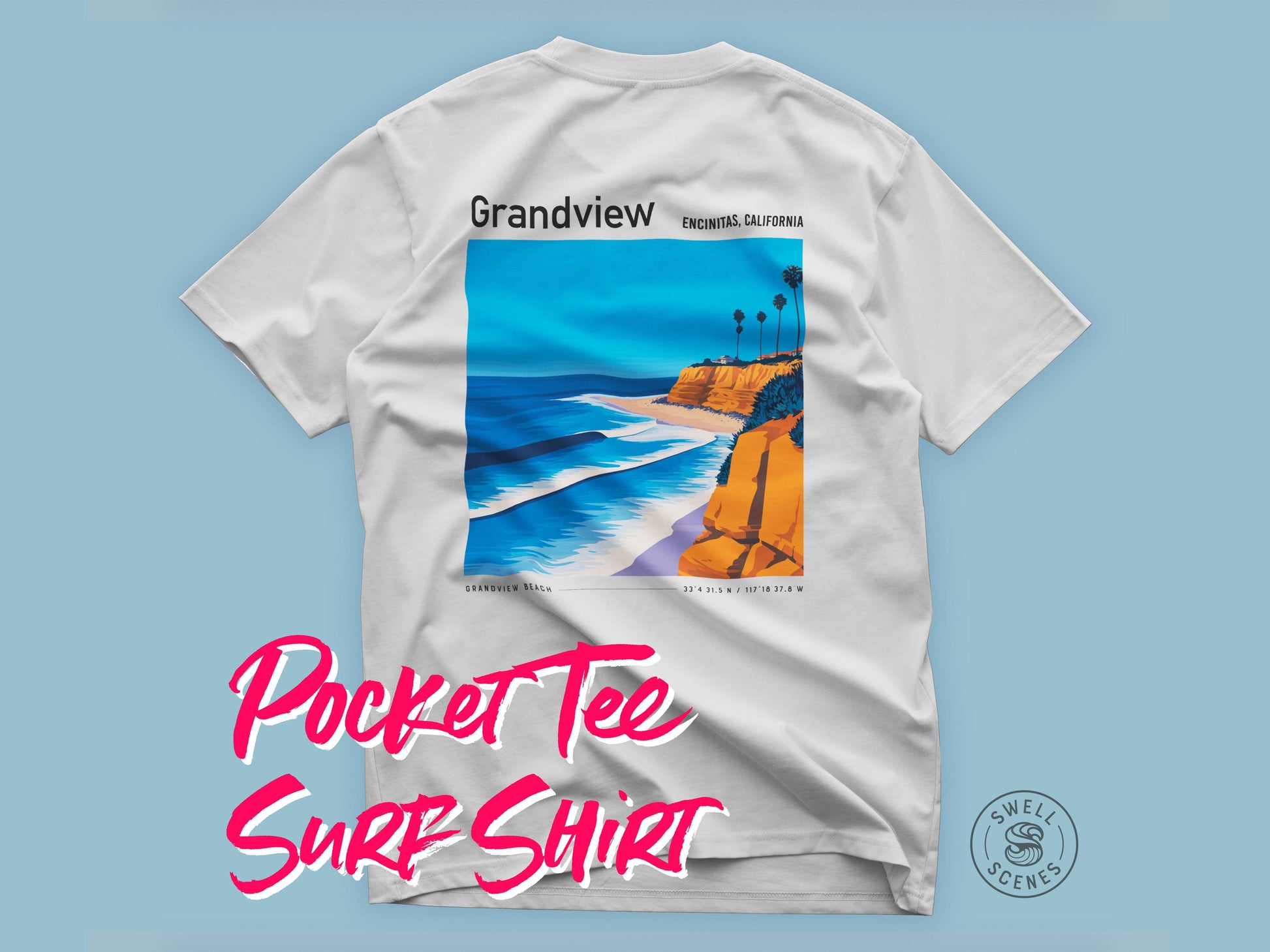 Grandview Encinitas California Vintage Surf Shirt Pocket Tee SoCal Surfer Classic T-Shirt Gift Surfing San Diego Beach Coastal Wear Apparel