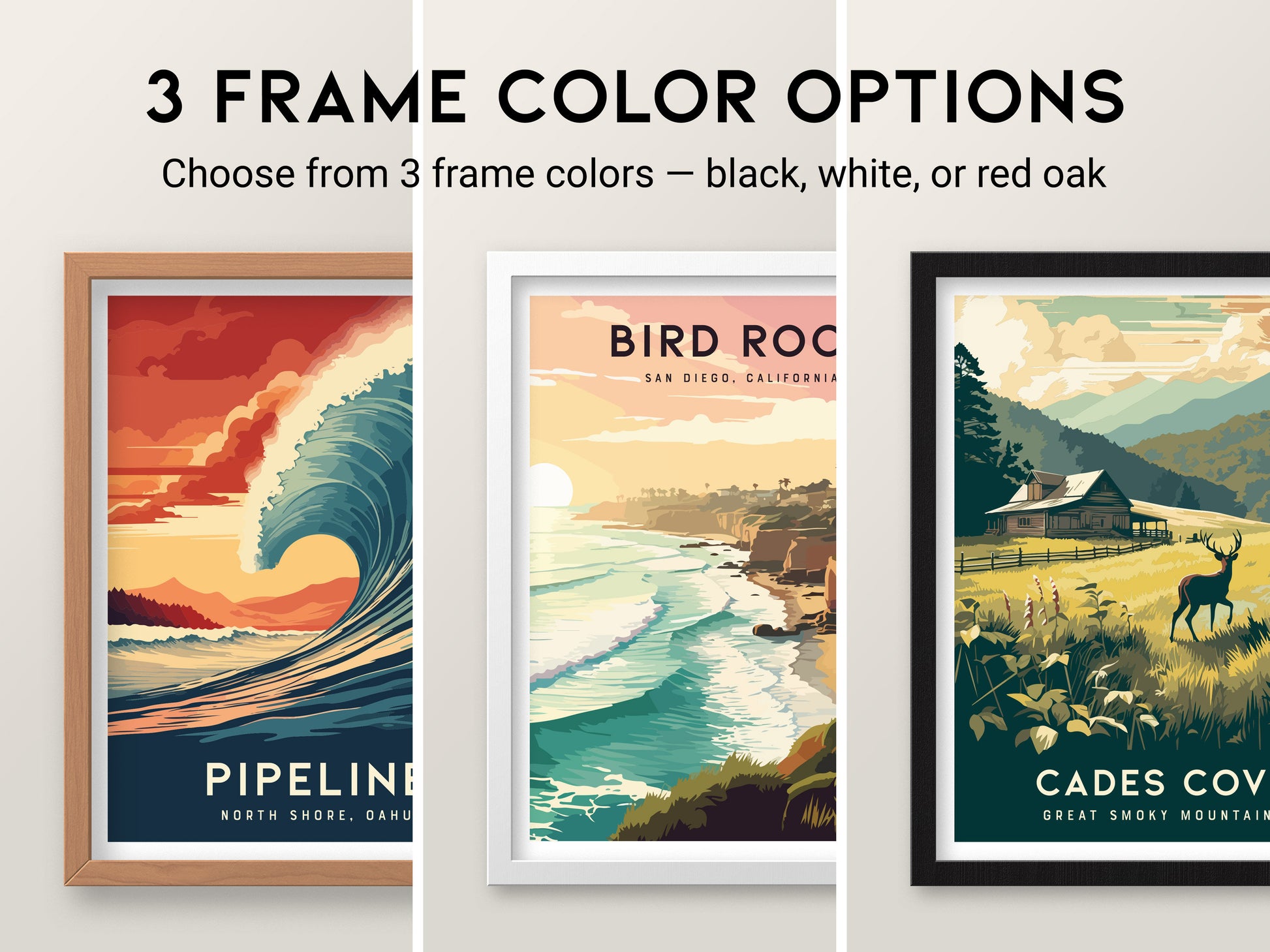 We currently offer a curated range of standard sizes and frame colors to ensure perfect quality and fit. If you need a specific size, reach out — we may be able to help.