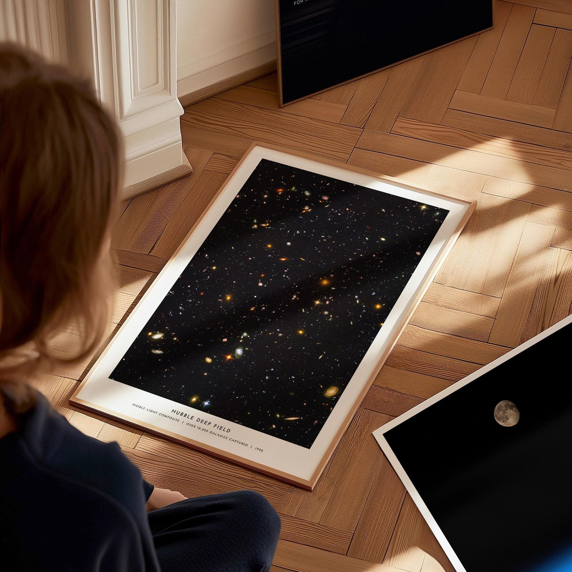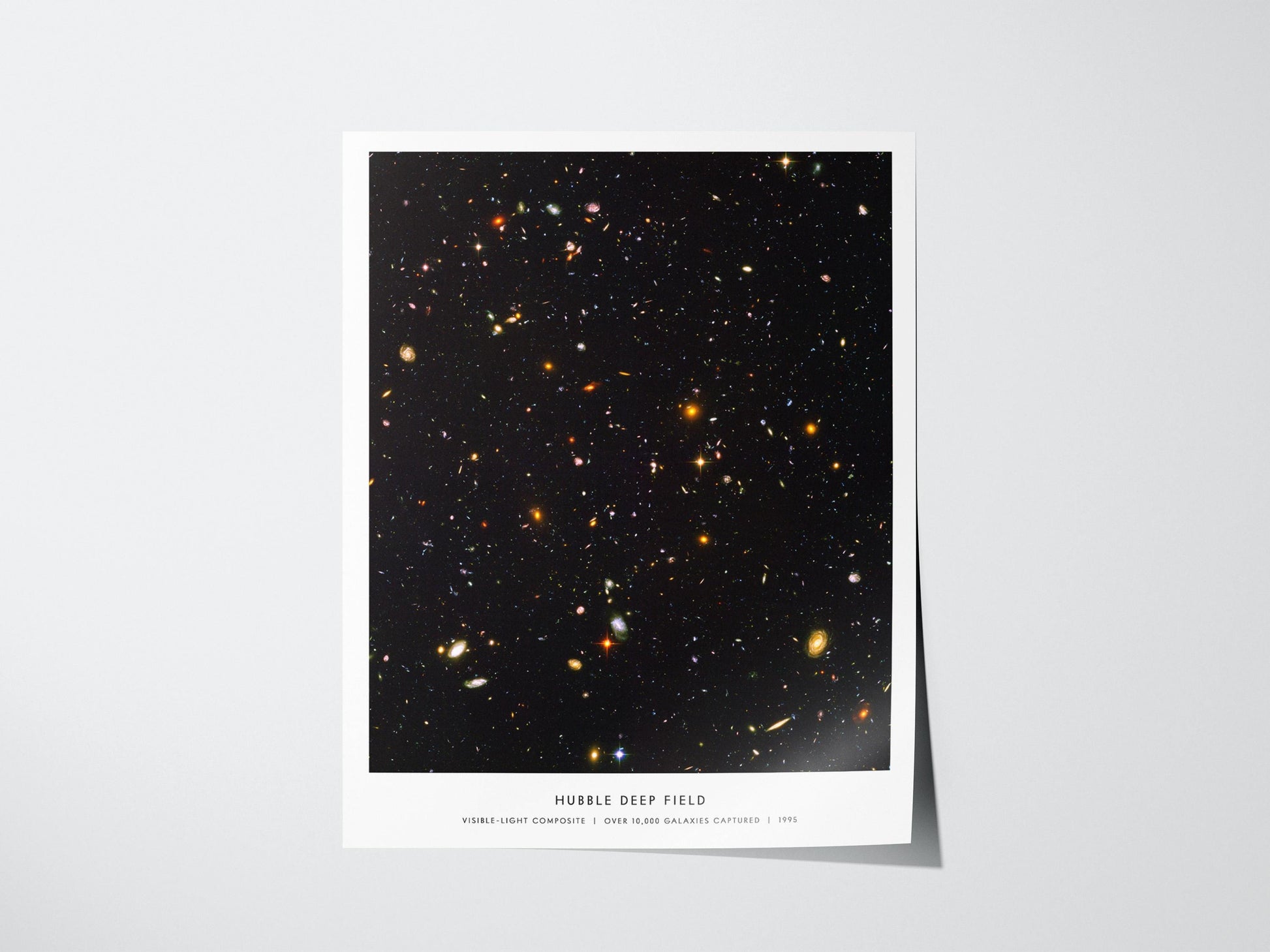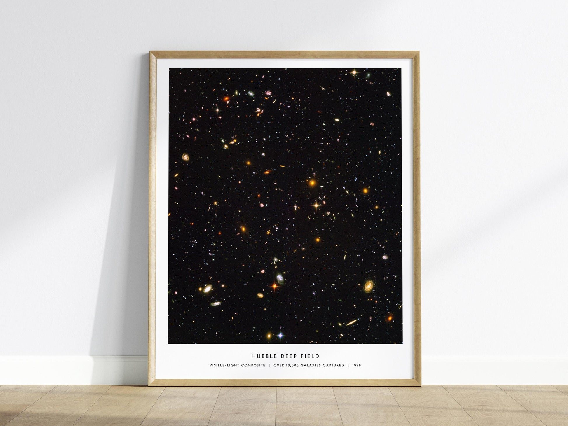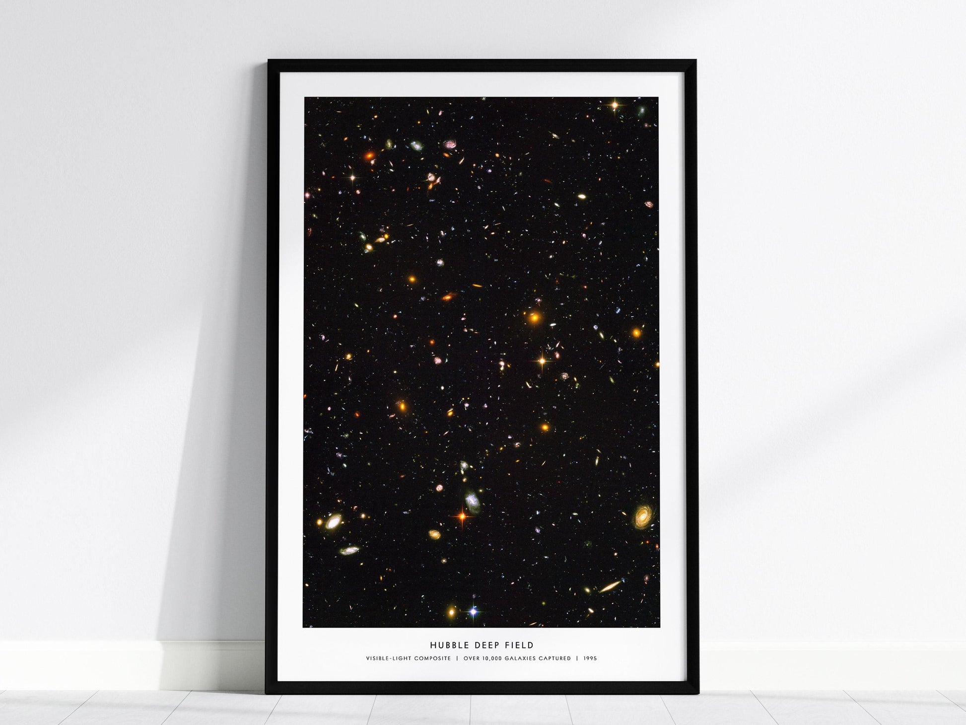 Experience the infinite vastness of the cosmos with this awe-inspiring Hubble Deep Field poster. This iconic visible-light image was captured in 1995 by NASAs Hubble Space Telescope, revealing a seemingly empty patch of sky that turned out to contain over 10,000 distant galaxiessome more than 10 billion light-years away.