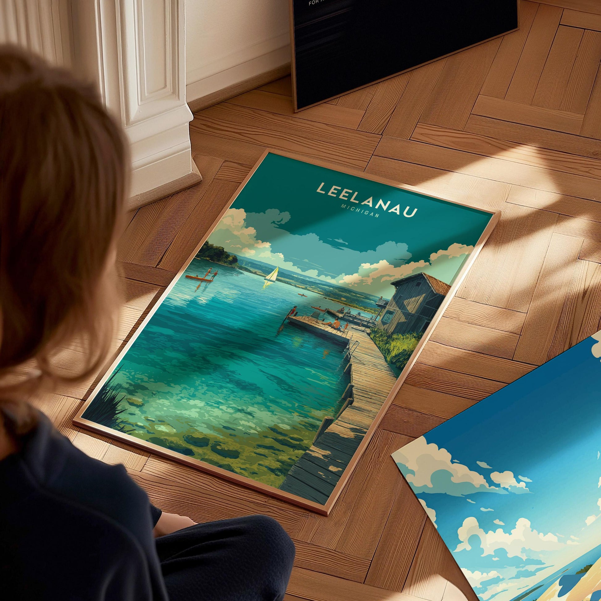Perfect for anyone who cherishes northern Michigan’s coastlines, cherry country charm, or the peaceful energy of a dockside view. Whether you’ve spent summers in Suttons Bay or love exploring Sleeping Bear Dunes, this print brings that warm lake breeze right to your wall.