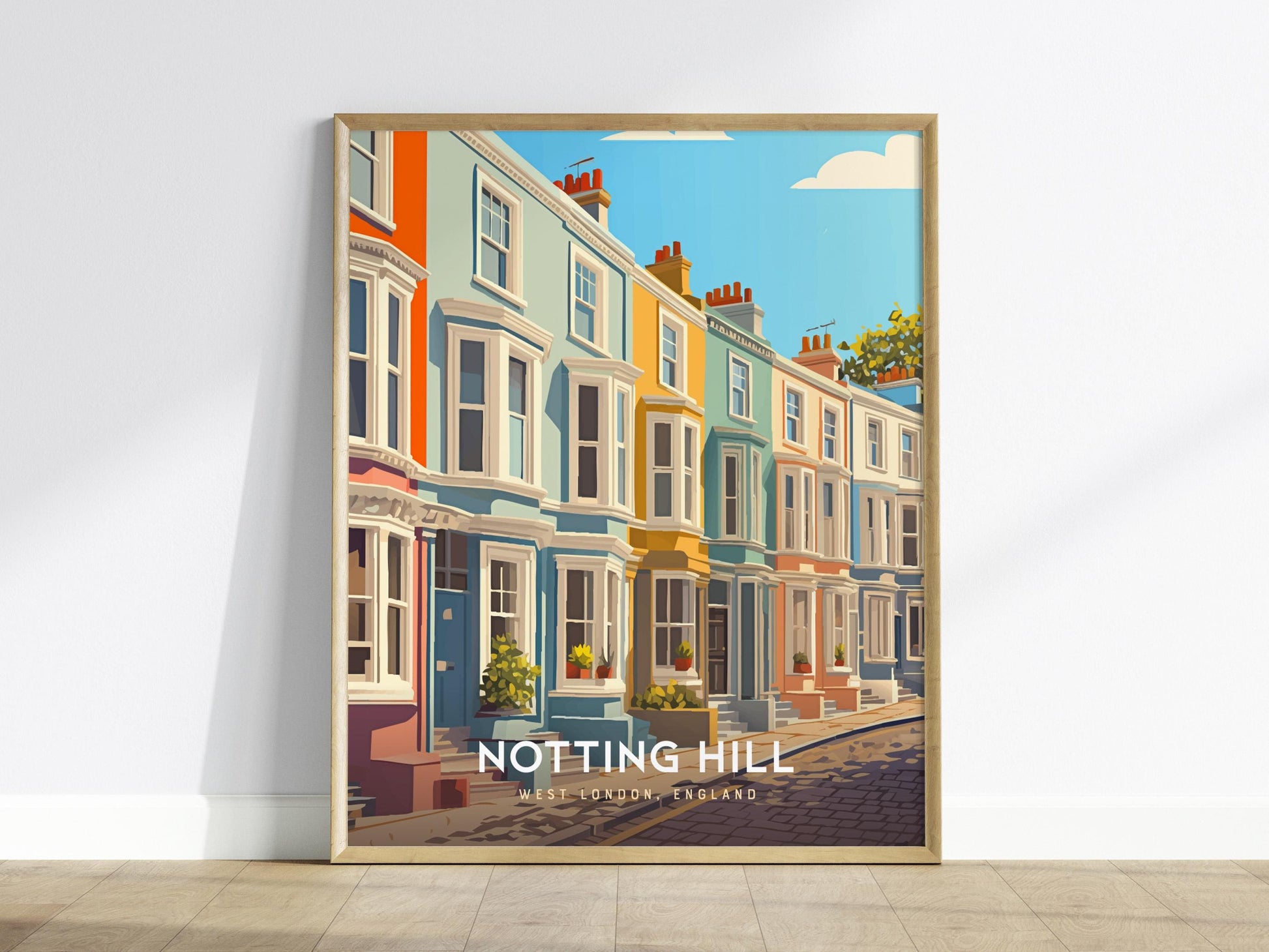 Notting Hill London Pastel Townhouses England UK Framed Unframed Travel Print Wall Art