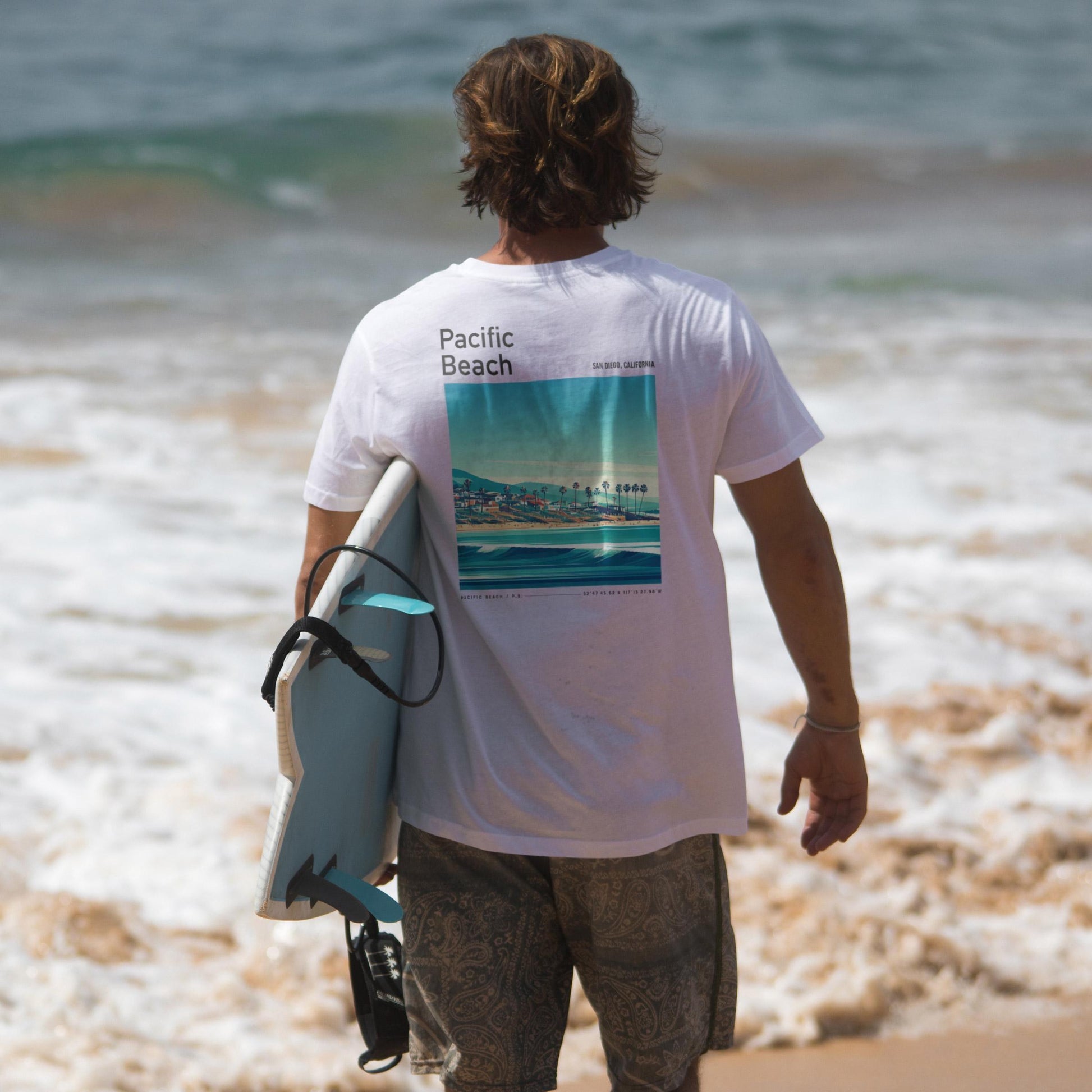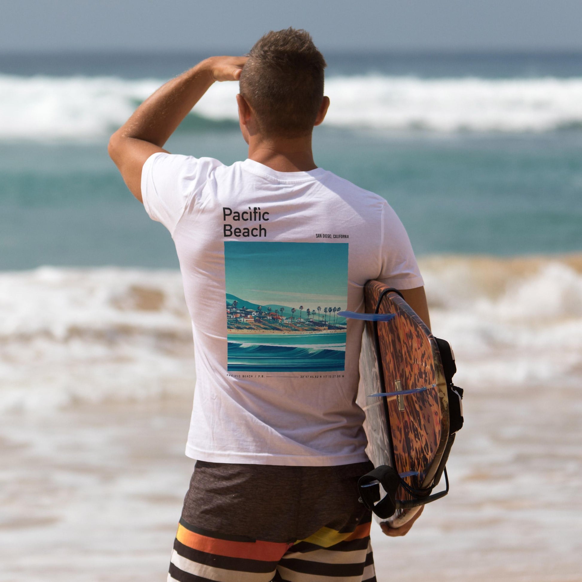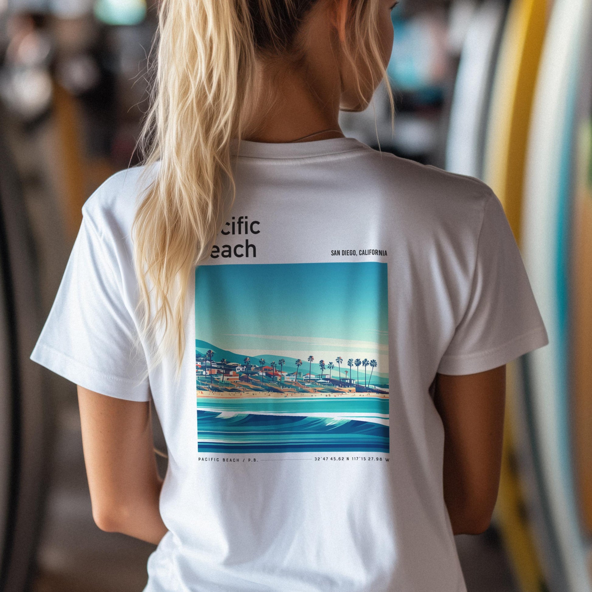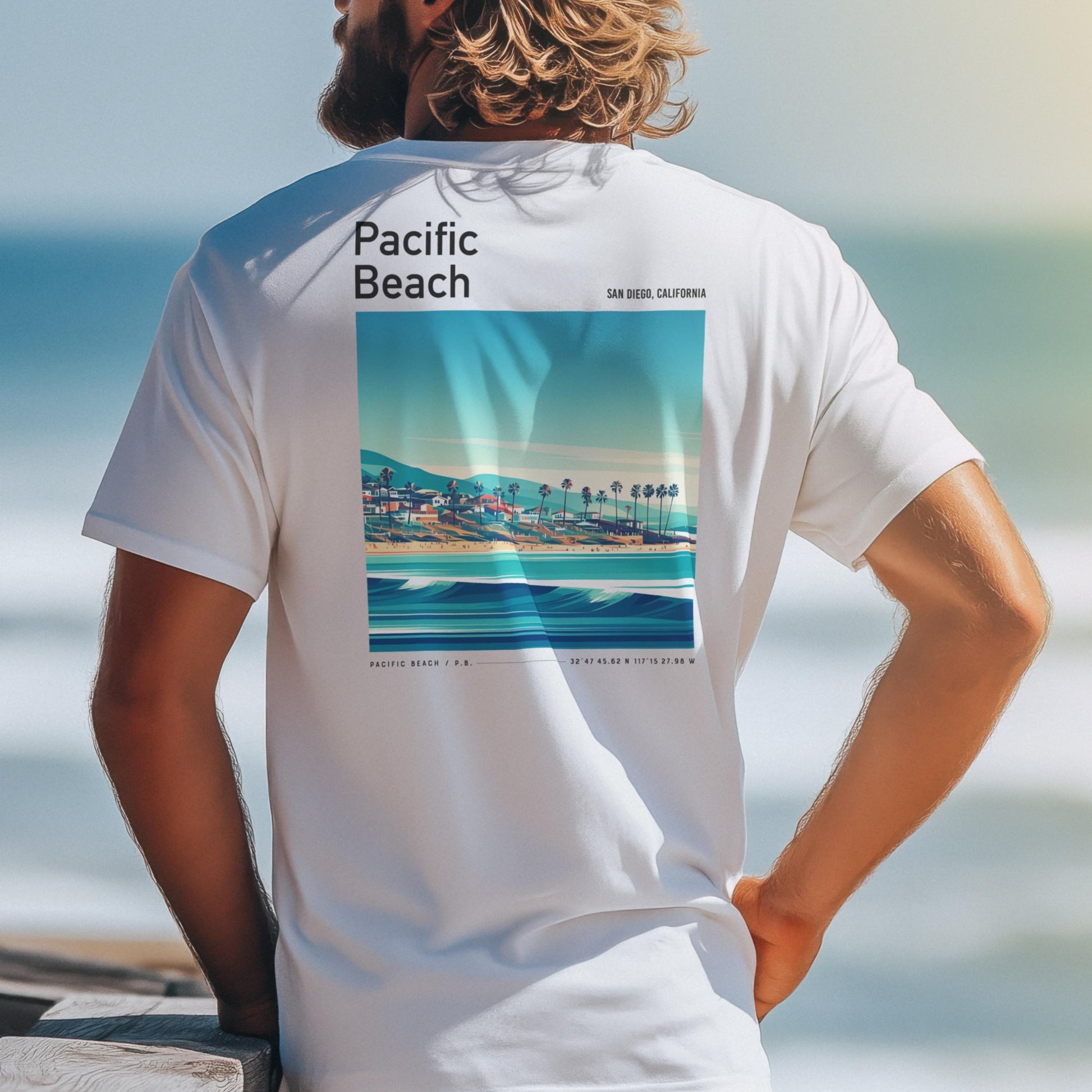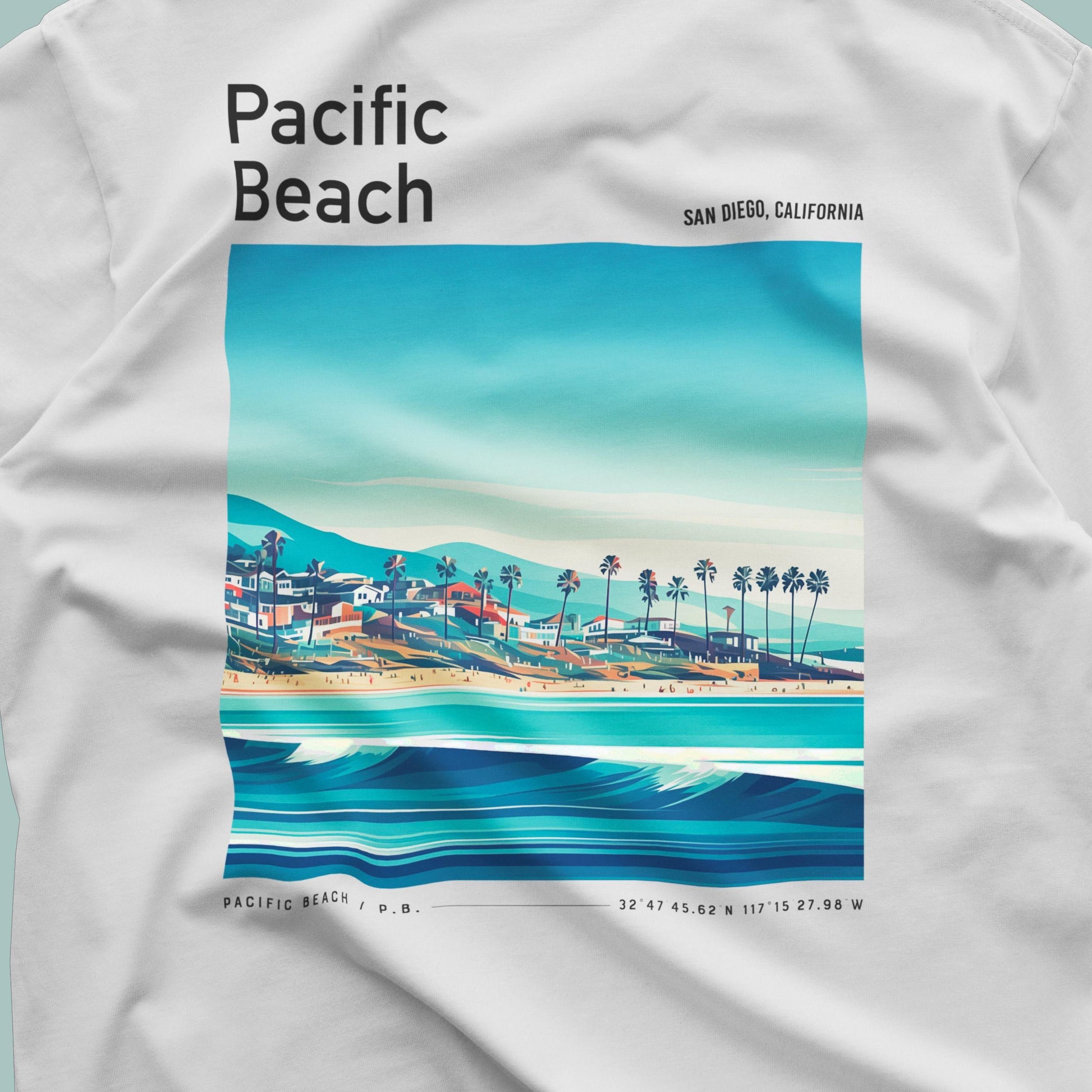 Located in San Diegos Mission Bay area, Pacific Beachbetter known as P.B.is a vibrant surf town known for its fun beach breaks, buzzing boardwalk, and iconic Crystal Pier. Whether youre catching waist-high peaks, biking to taco spots, or just soaking in sunset over the Pacific, PB is always serving up good vibes. This tee brings that sun-washed California feeling with you wherever you go.