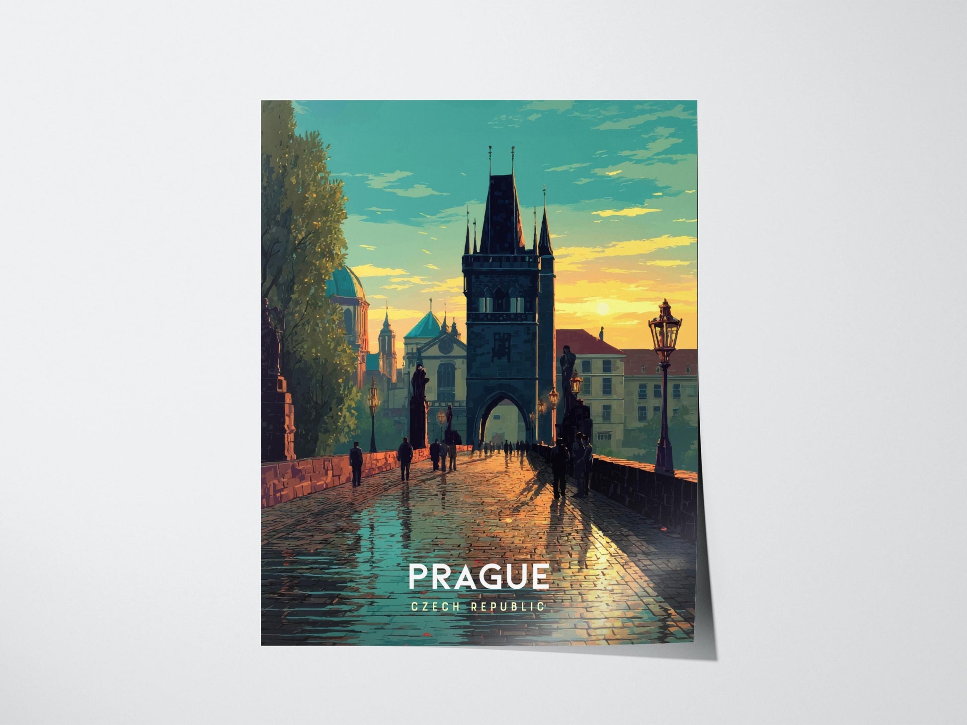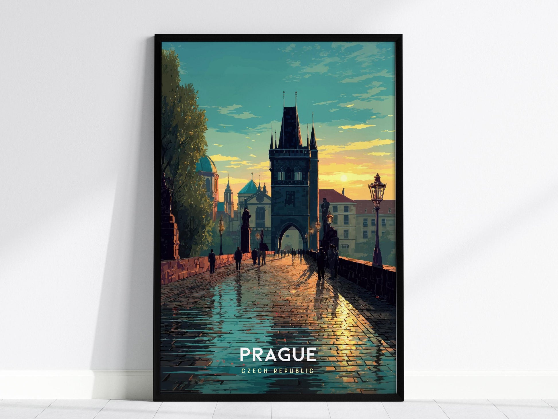 Prague Czech Republic Charles Bridge Sunset European Cityscape Framed Unframed Travel Print Wall Art