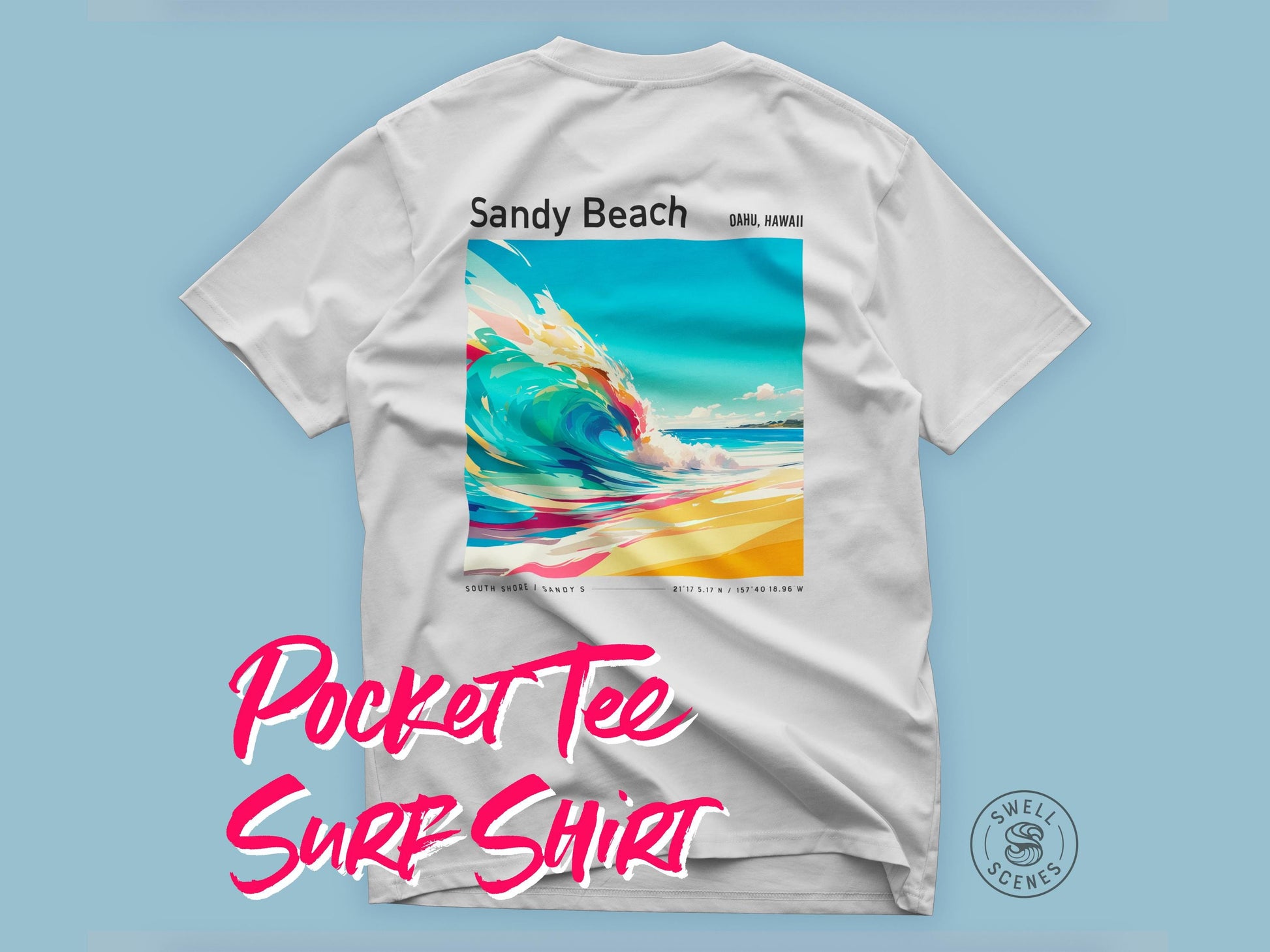 Sandy Beach Oahu Hawaii Vintage Surf Shirt Pocket Tee Classic Bodyboarder Surfer T-Shirt Gift Surfing South Shore HI Beach Wear Apparel