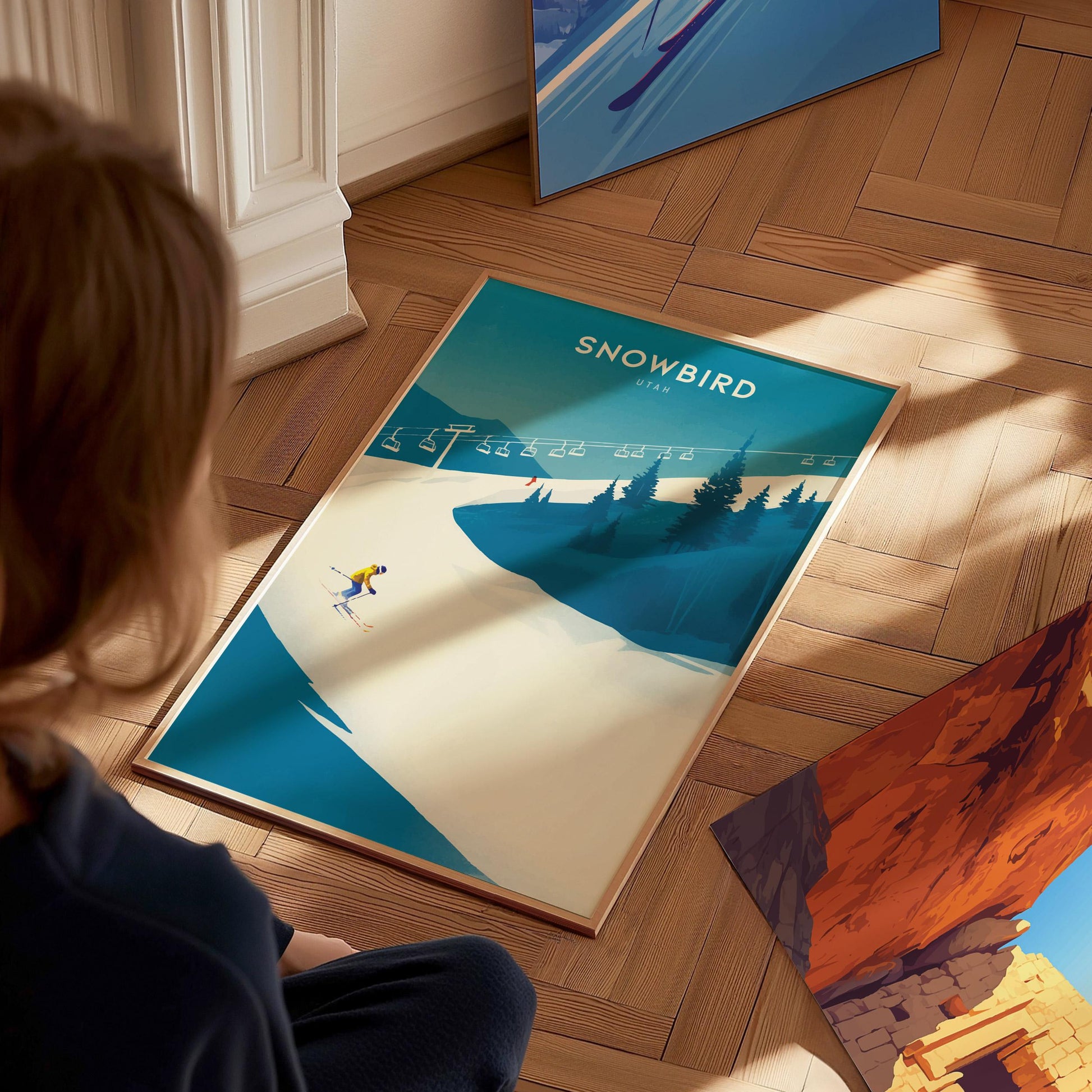 Whether youre a dedicated skier, a mountain lover, or simply searching for the perfect winter lodge decor, this print makes an exceptional gift or centerpiece. Perfect for ski cabins, living rooms, offices, and adventure-themed spaces, this artwork brings the thrill of Snowbird to any home.