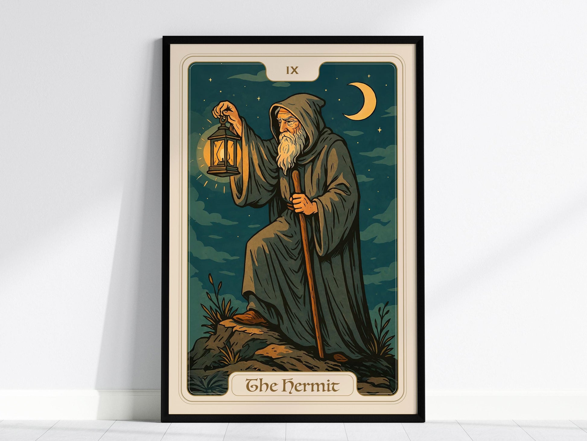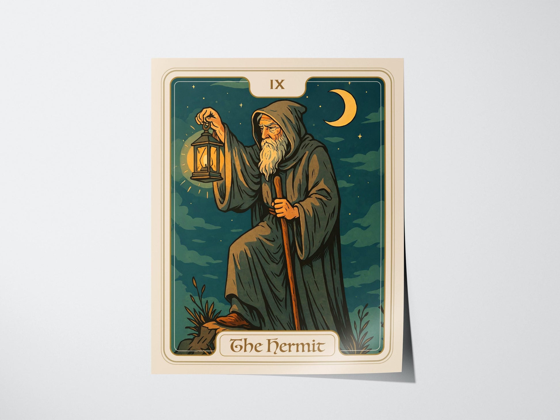 The Hermit Tarot Poster | Major Arcana Card IX Inner Wisdom Wall Art