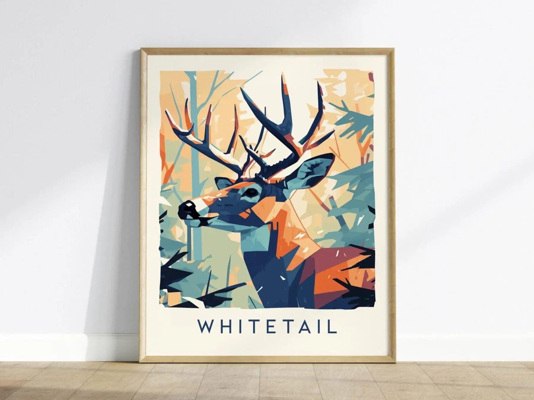 Whitetail Deer Poster | Wildlife Buck Hunting Cabin Wall Art Gift